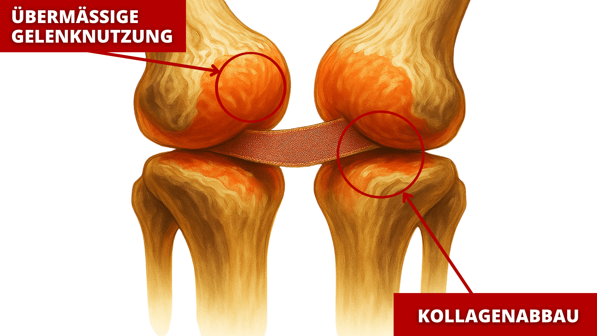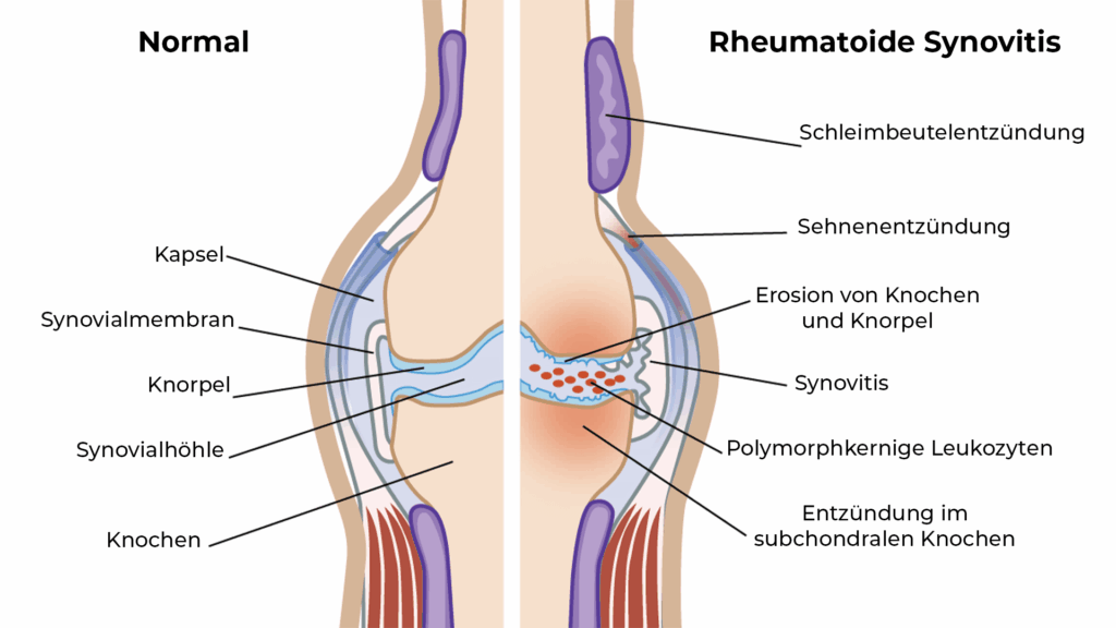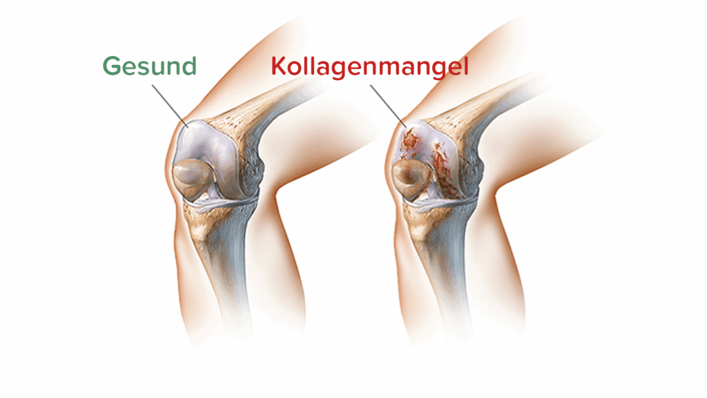 vs. ein geschädigtes Gelenk mit Kollagenmangel auf der rechten Seite.