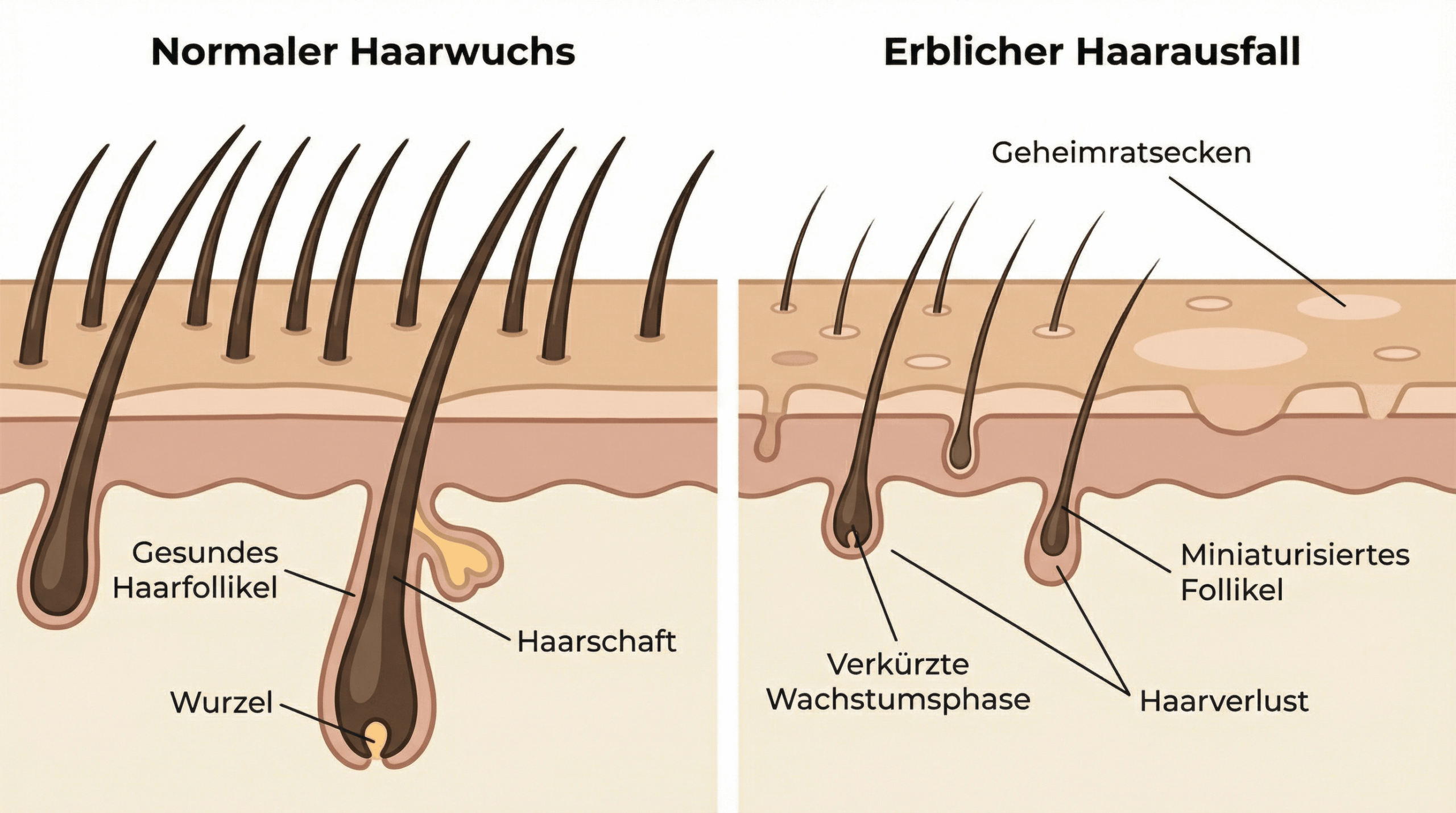 Die genetische Empfindlichkeit gegenüber dem Hormon DHT kann sich nun ungehindert auswirken…