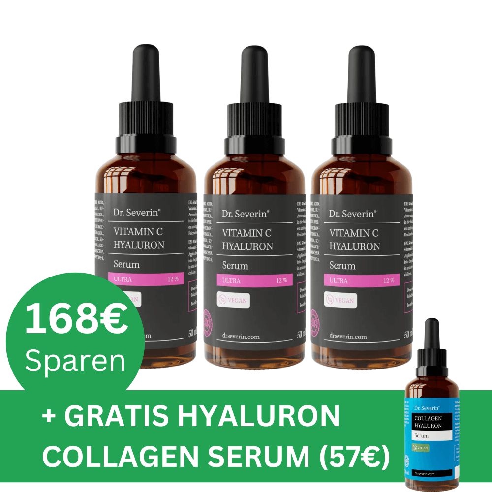 Das Dr. Severin Vitamin C Ultra-Serum enthält eine Kombination aus Vitamin C und Hyaluronsäure. Diese Inhaltsstoffe arbeiten synergistisch zusammen, um die Hautstruktur zu verbessern, Feuchtigkeit zu spenden und das Erscheinungsbild von Falten zu reduzieren.